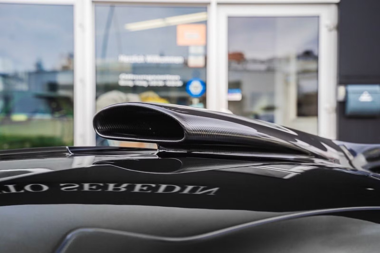 Inside, the cockpit is defined by Black Alcantara and exposed carbon surfaces, creating a focused environment that remains surprisingly refined for a homologated F1-derived platform. The fixed-back sports seats integrate directly into the chassis for rigidity, while the multifunction steering wheel adopts F1-inspired controls and drive-mode selectors. Ambient lighting, climate control, digital displays, and full smartphone integration offer a modern counterpoint to the otherwise minimalist ethos. The cabin is intentionally compact, tailored for performance-driven ergonomics and driver immersion.