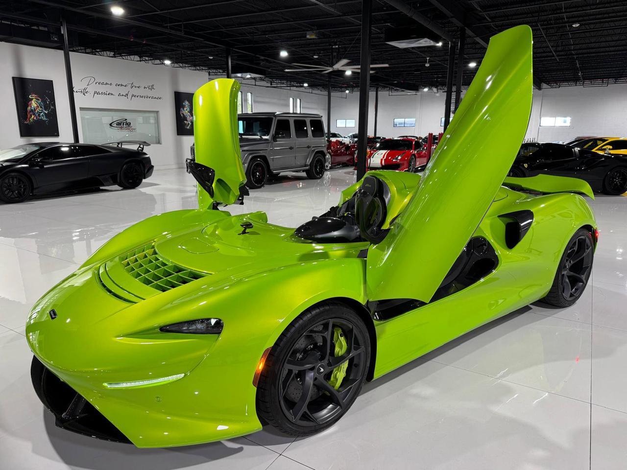 This example, offered by Carrio Motor Cars in Florida, carries just 480 miles, preserving its near-delivery condition. Configured in Napier Green with matching brake calipers, it showcases one of the most dramatic and visually striking specifications developed for the Elva. The model’s open-air design, lack of windshield, and advanced airflow management system create an experience closer to a track car than any other road-legal McLaren.